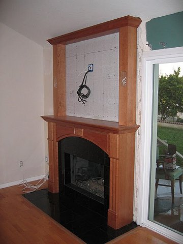 Marble Face Fireplace and hearth - custom wood mantel