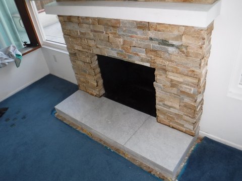 Stone Face Fireplace - Truestone Desert Gold with Sandstone Hearth