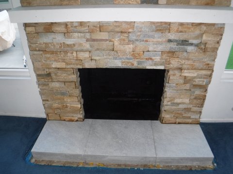Stone Face Fireplace - Grey Gold Limestone Veneer