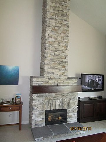 Stone Face Fireplace - Eldorado Alderwood stackstone with Robinson Cheasepeake Brick